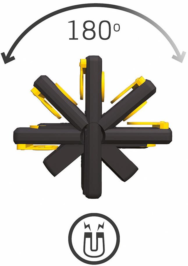• Magnet und ausklappbare, um 360° frei drehbare Aufhängevorrichtung