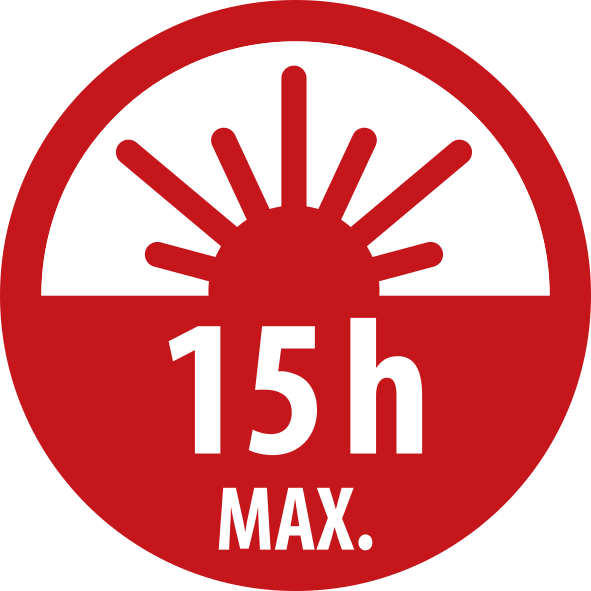 - Leuchtdauer Hauptlicht: max. 15h