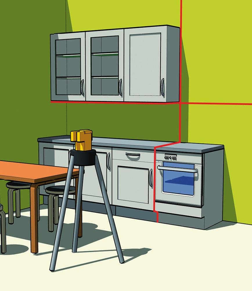 • Selbstnivellierend, projiziert je eine lange und gut sichtbare horizontale und vertikale Laserlinie