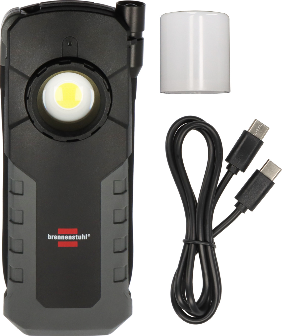 Die Akku LED Handlampe HL 1000 ACW von Brennenstuhl ist eine extrem robuste Inspektionsleuchte mit tauschbarem Li-Ion-Akku 3,7V/2,5Ah und einer Ladestandsanzeige für die Ausleuchtung von engen und schwer zugänglichen Umgebungen. Diese vielseitig einsetzbare LED Arbeitsleuchte mit IP54-Schutzklasse verfügt über vier verschiedene Schaltstufen (Spot - COB: 100%-50%-25%), um jeder Anforderung gerecht zu werden. Die Inspektionsleuchte kann über die USB C-Ladeschnittstelle bequem mit dem mitgelieferten USB C-Ladekabel oder alternativ über das separate wireless Ladepad (nicht im Lieferumfang enthalten) aufgeladen werden. Durch die gummierte Oberfläche sorgt die LED Akku Werkstattlampe für beste Griffigkeit und überzeugt außerdem durch folgende Eigenschaften:
