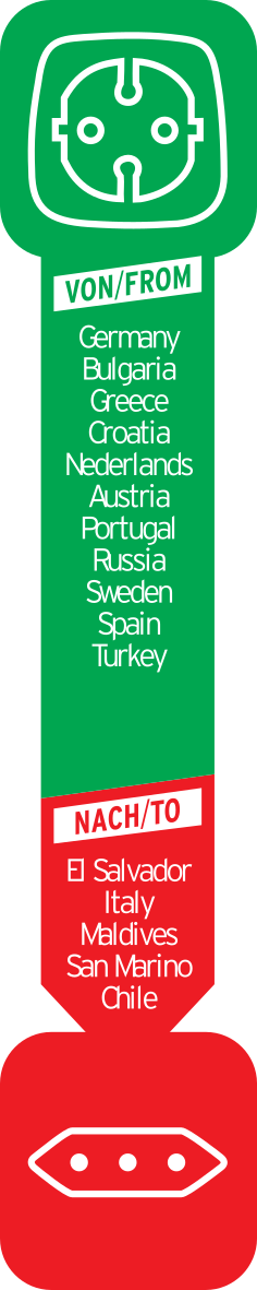 - Adapter zum Anschluss elektrischer Geräte mit Schutzkontakt-Stecksysteme wie z.B. DE, NL, ES, PT, SE, FI, NO, GR, TR, AT ... in Länder mit italienischem Stecksystem (Bitte beachten Sie, dass es manchmal in den verschiedenen Ländern mehrere Stecksysteme gibt und Brennenstuhl keine Garantie dafür übernimmt, dass der Reisestecker für alle Stecksysteme in einem Land passend ist)