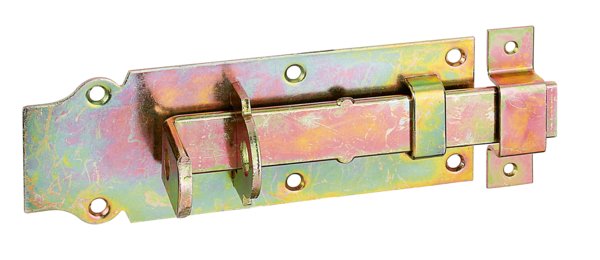 Schlossriegel,m.flachem Griff,gerade,m.Schlaufe,gelb verzinkt,Platte LxB180x64mm