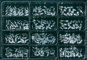 Ausführungen: H1: gerade H2: 45°-Winkel H3: 90°-Winkel • Oberfläche: verzinkt • Inhalt: ca. 225 Teile H1: M 6; M 8; M 10; M 6x1; M 8x1; M 10x1 H2: M 6x1; M 8x1; M 10x1 H3: M 6x1; M 8x1; M 10x1