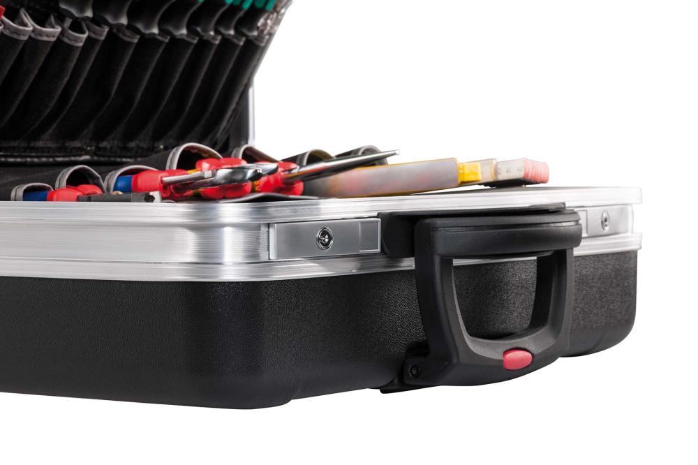 • Mit strapazierfähigen Werkzeugtafeln aus Con-Pearl® (Kratzfestigkeit, Formstabilität, Beständigkeit gegen Feuchtigkeit, Fette und Chemikalien)