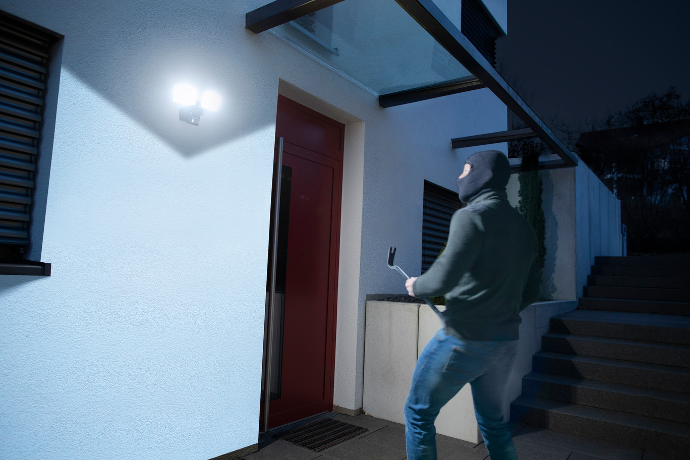 Der WiFi LED Strahler Duo mit Bewegungsmelder WFD 3050 P von Brennenstuhl Connect zur Wandmontage eignet sich ideal für die Ausleuchtung im Außenbereich dank der Schutzart IP54 (staub- und spritzwassergeschützt). Der smarte Fluter mit superhellen Everlight SMD-LEDs kann dank integriertem WiFi Modul ganz einfach und bequem per kostenloser Brennenstuhl Connect App gesteuert werden, über welche sich auch diverse Lichtfunktionen, wie beispielsweise die Einstellung der Helligkeit oder auch die Farbtemperatur, einstellen lassen. Zudem überzeugt der WLAN LED Strahler durch folgende Eigenschaften: